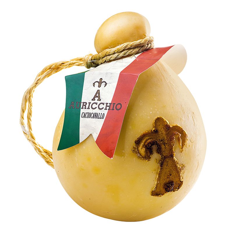 Auricchio Giovane (Young Provolone) Caciocavallo is still produced today following the ancient and traditional recipe of Auricchio Provolone and made from premium quality milk in the Po valley region, Italy. It is a stringy cheese and has a pear shape appearance.