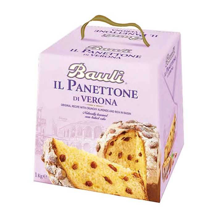 Bauli IL Panettone di Verona is just like the traditional Panettone without candied fruit yet with lots of soft raisins and topped with a delicate almond glaze and powdered sugar. Benefits: Made in Italy and Suitable for Vegetarians