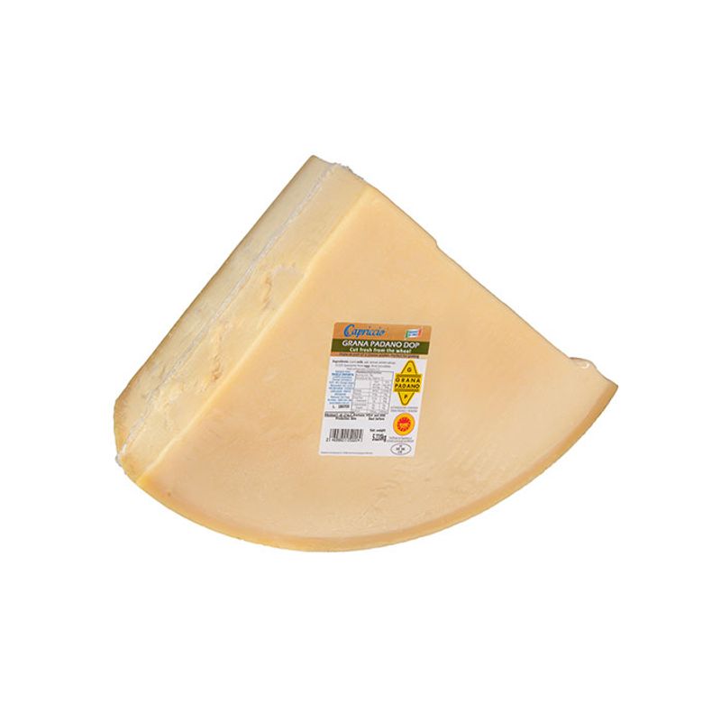 Capriccio Grana Padano is one of the most popular and renowned D.O.P. Cheeses of Italy. It is made from unpasteurised, semi-skimmed cow’s milk in Parma, Italy. Being a D.O.P cheese means it guarantees the highest quality and is produced in the Po River valley, Italy using traditional methods. Each and every wheel of Grana Padano is made using a unique procedure, which is repeated time and time again in exactly the same way.
