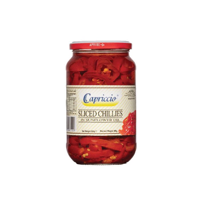 Capriccio Sliced Hot Chillies are marinated in Sunflower oil, which makes their use boundless.