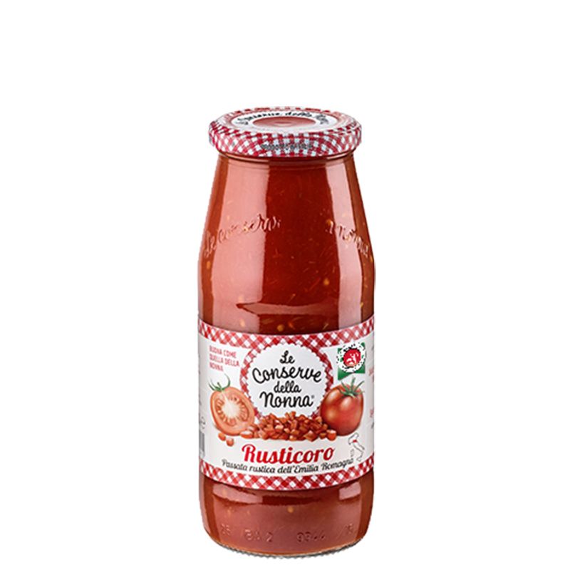 Le Conserve Della Nonna Rusticoro is a ready to use thick tomato sauce that is quick and easy to use, because it only needs to be heated.