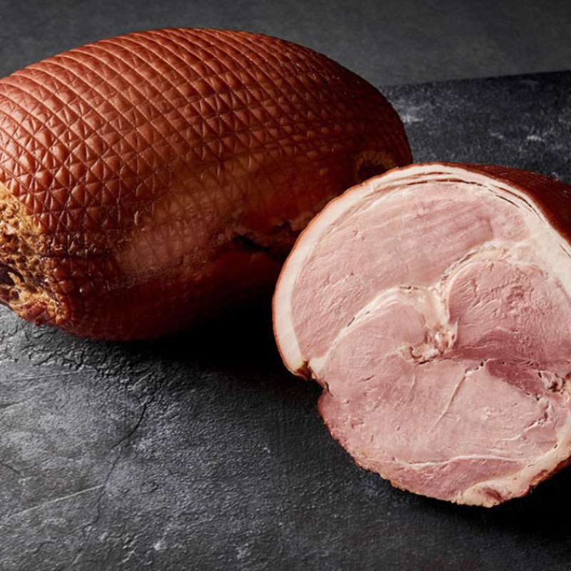 Boneless Leg Ham is lightly smoked using apple wood, beechwood, herbs and spices. No additives or gluing agents added, and made using age old techniques.