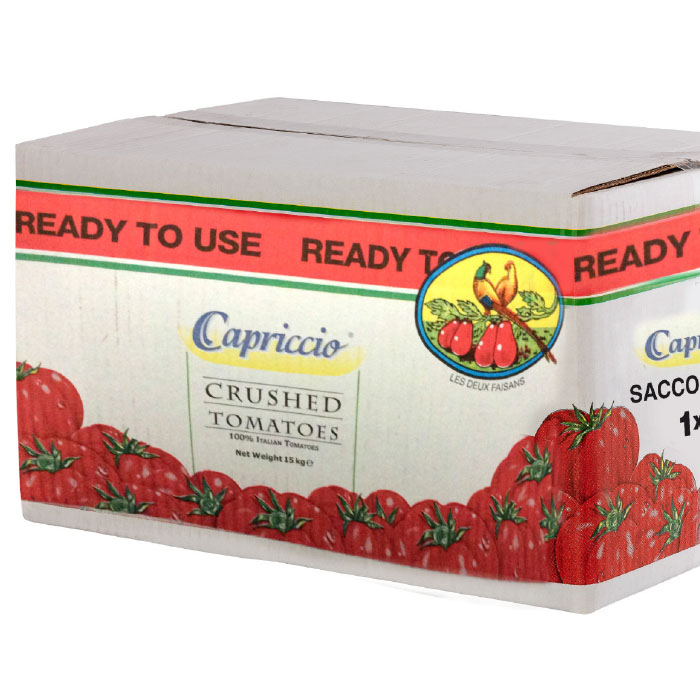 Capriccio Crushed Tomatoes is made using the finest and best ripe tomatoes grown in Italy. The fresh tomatoes are steamed, extruded and drained, producing an aromatic and tasty tomato sauce.