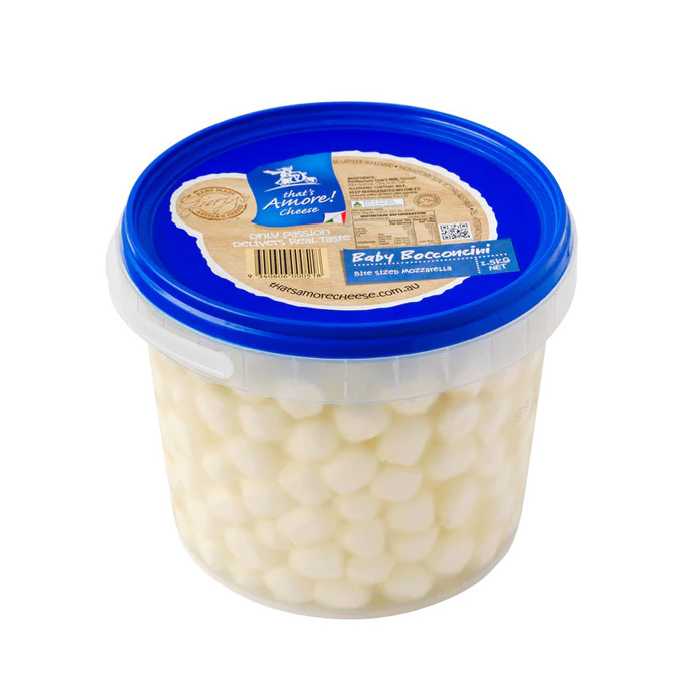 Baby Bocconcini are Fresh little mouthfuls of mozzarella made from cow's milk and moulded into 4g balls. Baby Bocconcini are a perfect addition to your pasta or salad dish.
