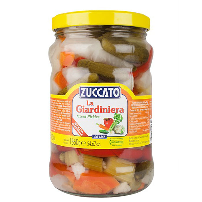 Giardiniera mixed pickles are made using the finest quality vegetables in particular carrots, celery, onions and gherkins. All the chopping and preserving is already done all you need to do is add it to other vegetable or rice salads. This variety is lightly salted to allow each vegetable to shine.