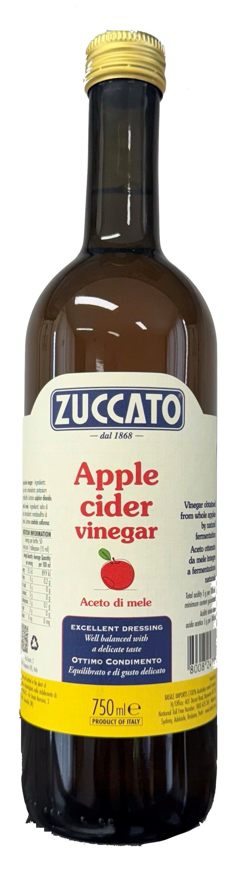 Zuccato Apple cider vinegar is made from whole fresh apples.